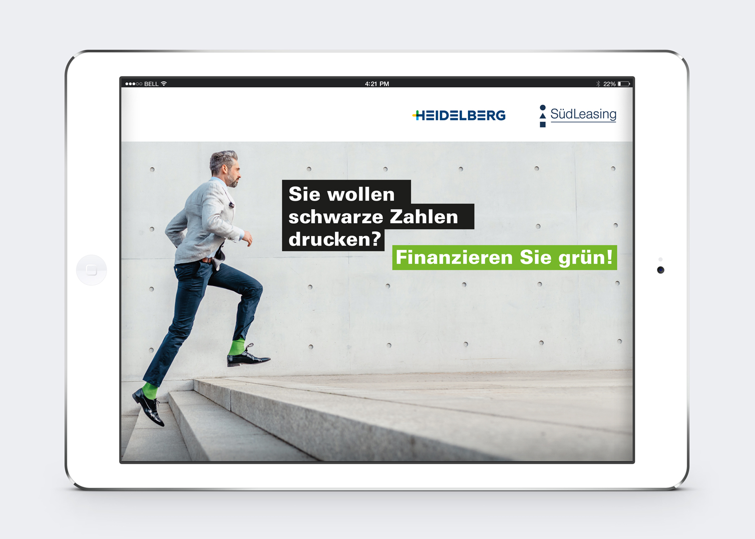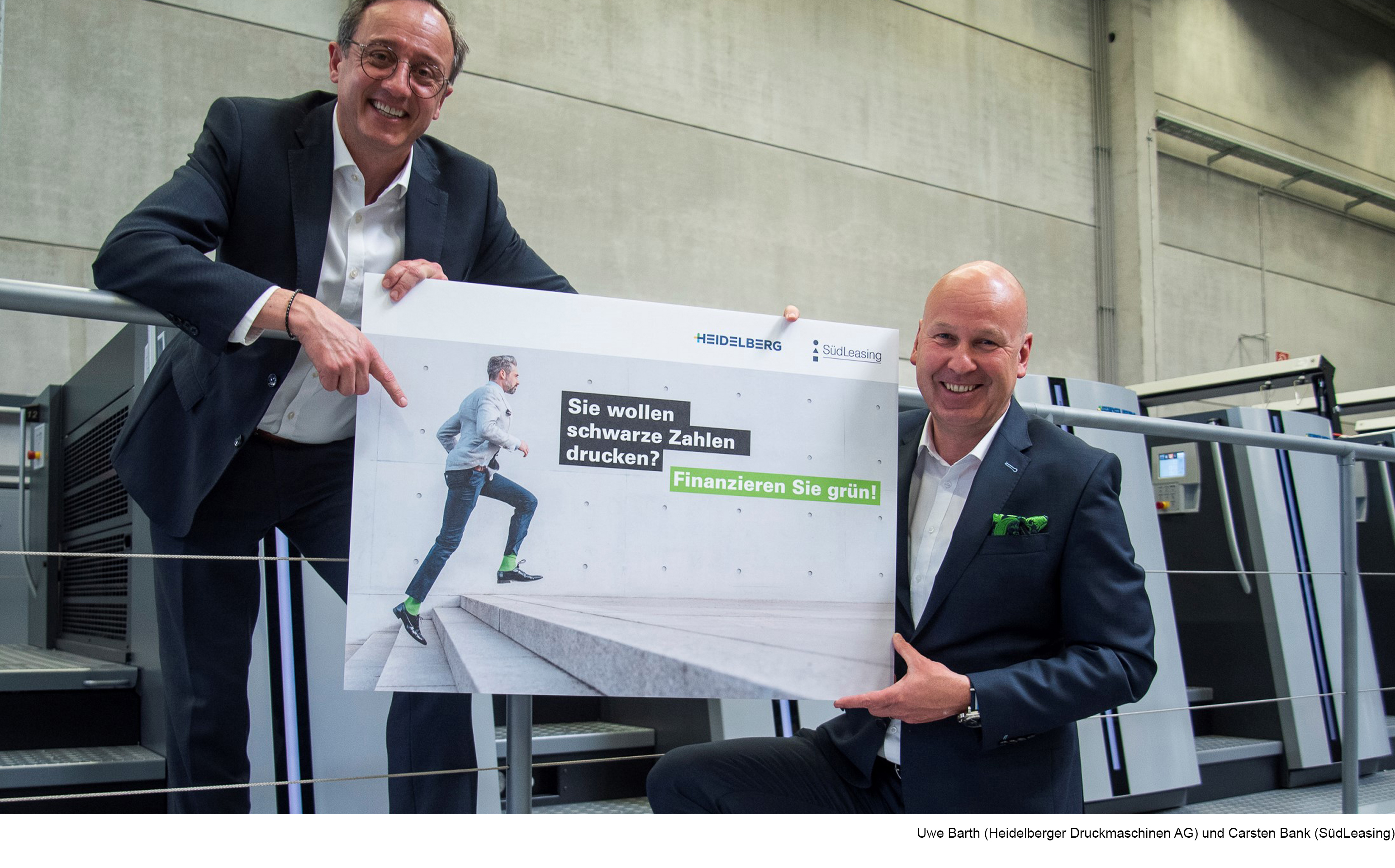 Sie wollen schwarze Zahlen drucken? Dann finanzieren Sie grün! Bevor Drucker aber grün finanzieren und damit schwarze Zahlen drucken können, müssen sie mit einer Kampagne auf die weltweit erste klimaneutrale Finanzierung für Druckmaschinen aufmerksam gemacht werden. Mit der haben uns unser Kunde Heidelberger Druckmaschinen und sein Partner SüdLeasing beauftragt. Und wir haben den Startschuss in die neue Finanzierungs-Ära geliefert: mit Film, Flyer, Anzeigen, PR und Landing Page. Und dem entscheidenden modischen Detail: grünen Socken …